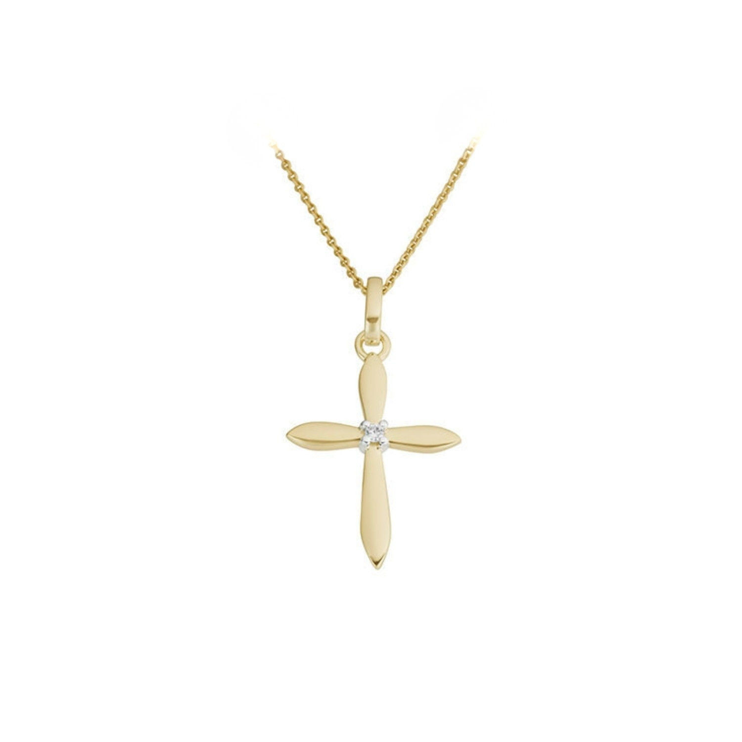 Kors i gull 14kt med 0,01ct W-P - Bur310714