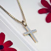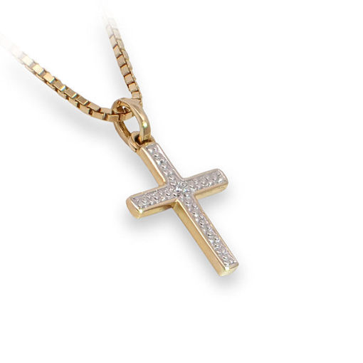 Kors i gult og hvitt gull 14kt/585 med diamanter - 135014bur