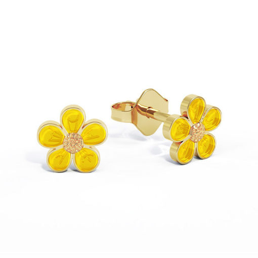 • Dette smykket har en smørblomst som henger som en liten bjelle. Emaljen gir blomsten livlige farger og gjør den til et blikkfang.