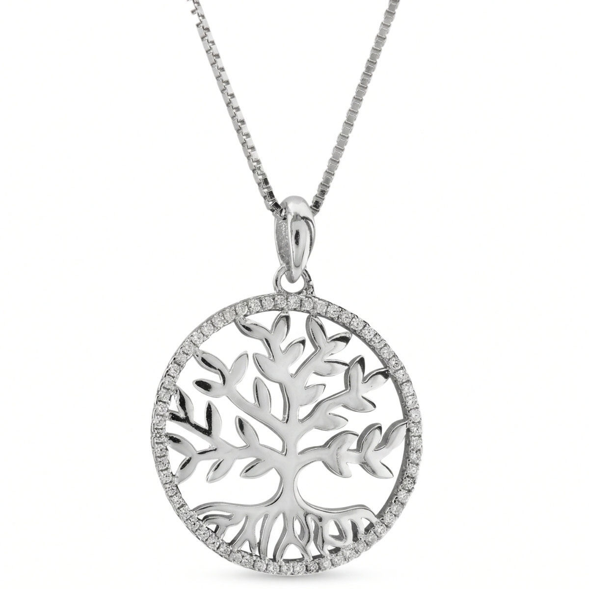 Elegant Livets tre i sølv med zirkonia – et tidløst og meningsfullt smykke.