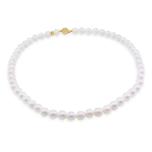 Perlekjede med Akoya perler med sølv lås. Perler har størrelse 7-7,5 mm.