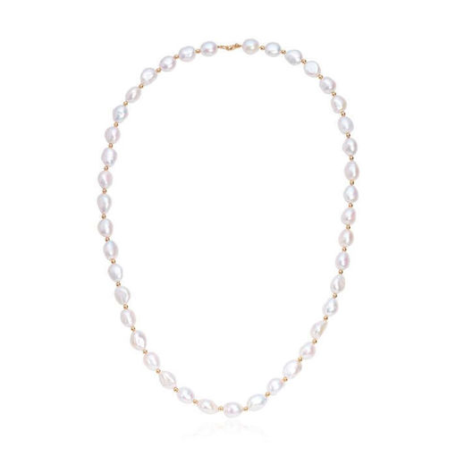 Dette Akoya perlekjedet med god kvalitet er en hyllest til tidløs eleganse og raffinement. Hver perle, med sin glatte overflate og skinnende glans med et hint av rosa, er et kunstverk i seg selv. Den klassiske hvite fargen og den naturlig formen gjør disse perlene til et tidløst tillegg til ethvert smykkeskrin.