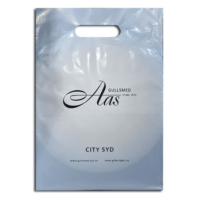 Plastpose med logo Gullsmed Aas. størrelse: 210mm x 297mm