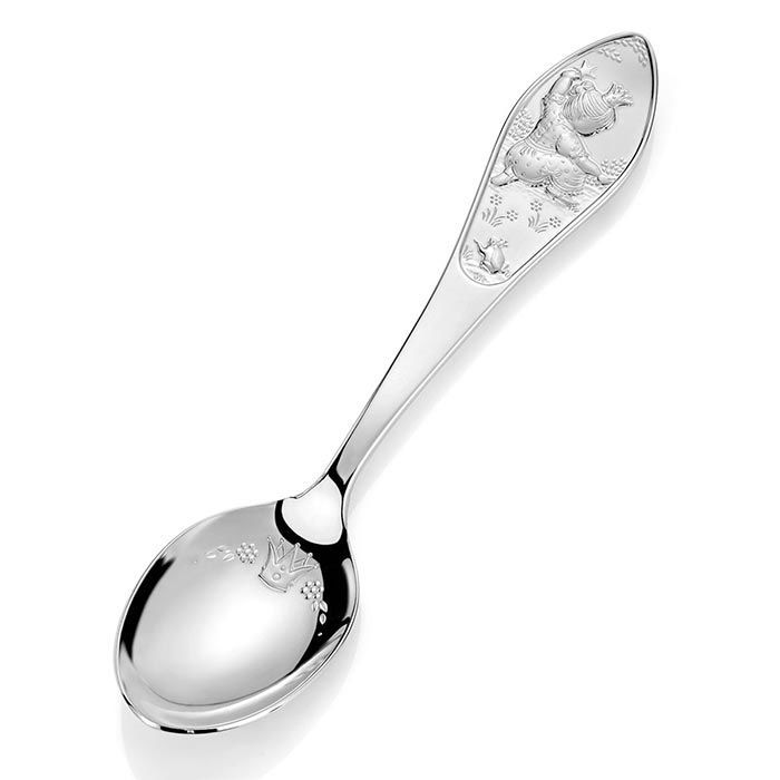 Barneskjeen er en del av serien For prinsesser. I denne serien finnes det mange produkter, blant annet sølvbestikk (babyskje, kniv, skje, gaffel) krus og tallerken i sølv, porselen, smykkeskrin, fotorammer og album. Serien er designet av vår designer Oddny H. Møyland. Barneskjeen er produsert i Norge, i EIKs lokaler utenfor Tønsberg. Alle våre produkter leveres i flotte gaveesker. Barneskjeen er produsert i ekte sølv, i kvalitet 925. Størrelse: Lengde: 14,5 cm.