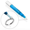 The premium twist-to-dispense click pen delivers a specialized cleansing solution to a flow-thru brush.