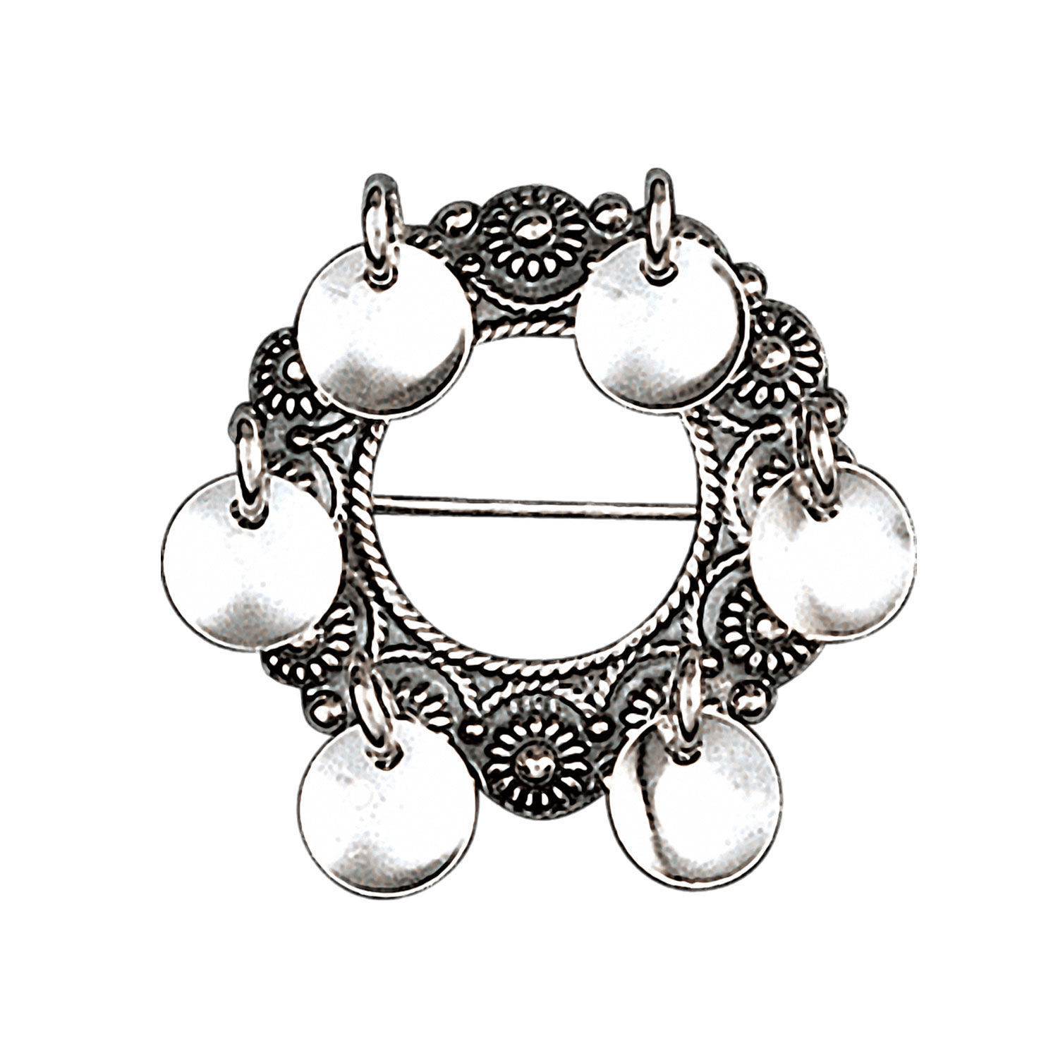Denne vakre barnesøljen i hvitt sølv er et tradisjonsrikt smykke med dype røtter i norsk kulturarv. Søljen er utformet med intrikate mønstre og dekorative detaljer som fremhever håndverkets finesse. Rundt kanten henger små blanke løv eller skåler som gir liv og bevegelse til smykket, og som reflekterer lyset på en elegant måte.