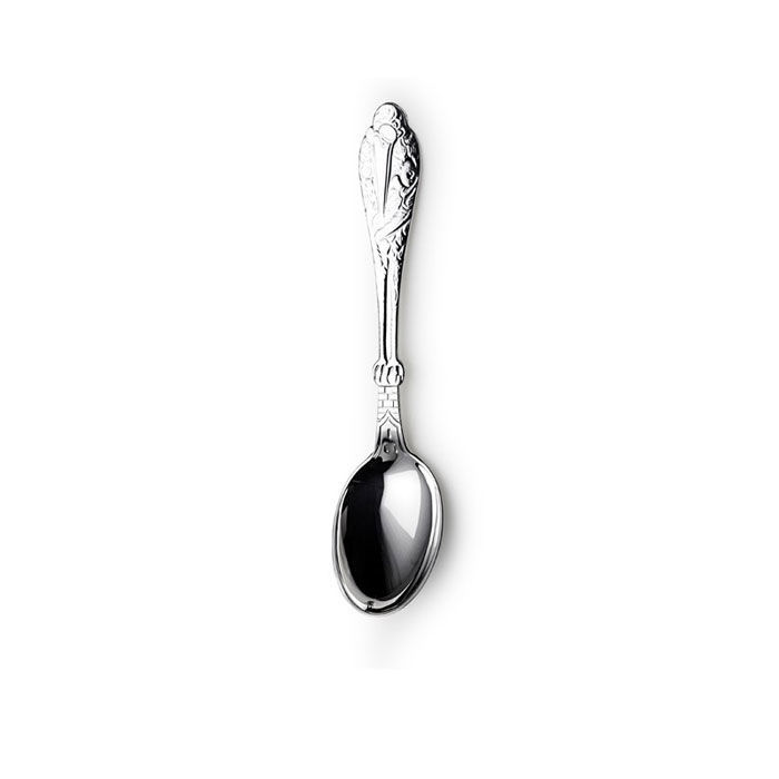 Stork babyskje ble til i 1920, og har et klassisk, tidløst design. Hver enkelt sølvskje håndlages lokalt av dyktige sølvsmeder hos Arven i sølvbyen Bergen. Dersom du ønsker graverer vi gjerne inn navn og dato på baksiden av skaftet.