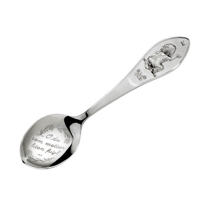Sølv barneskje, pike. O, du som metter liten fugl - 9708