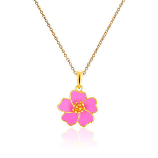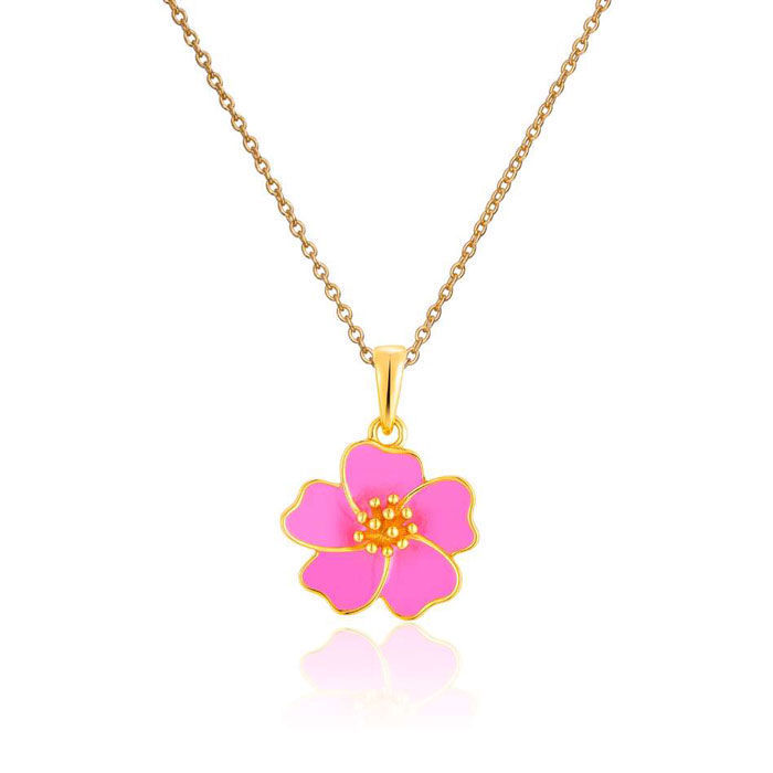 Sølvmykke Sommerblomst med rosa coloritt, forgylt - 3042842