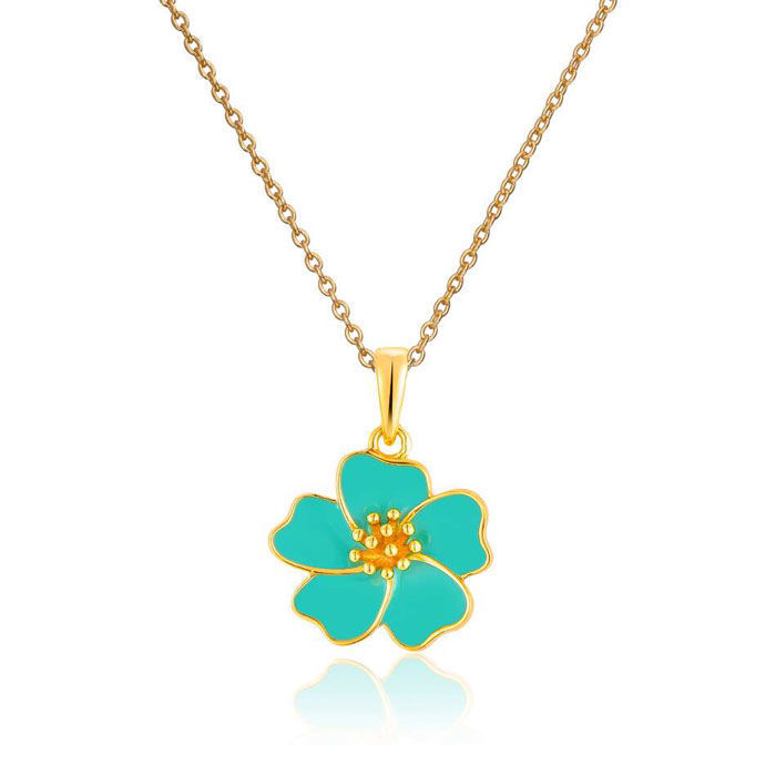 Sølvmykke Sommerblomst med turkis coloritt, forgylt - 3042642