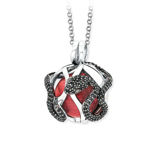 Sølvsmykke Englehviskeren i forgylt sølv, 17x17mm, med slange, flere farger