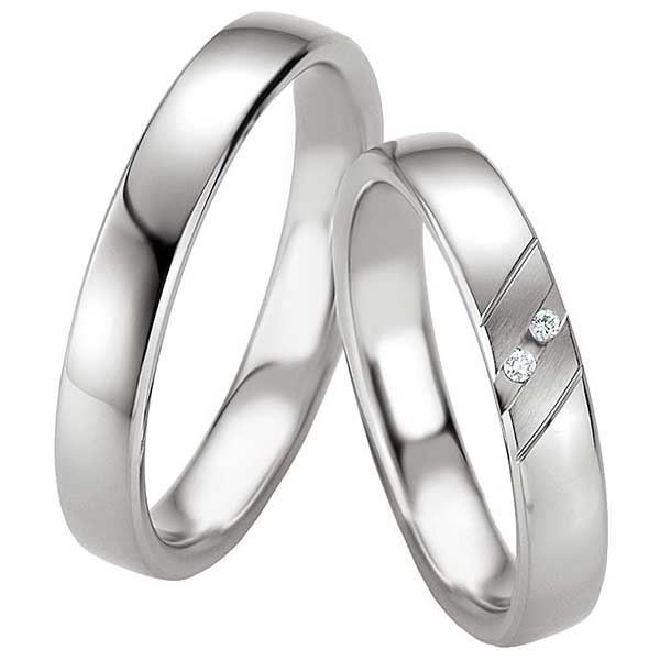 Samboerringer i sølv, 4 mm, 2 mm tykk med 2 diamant 0,02ct - 4808085