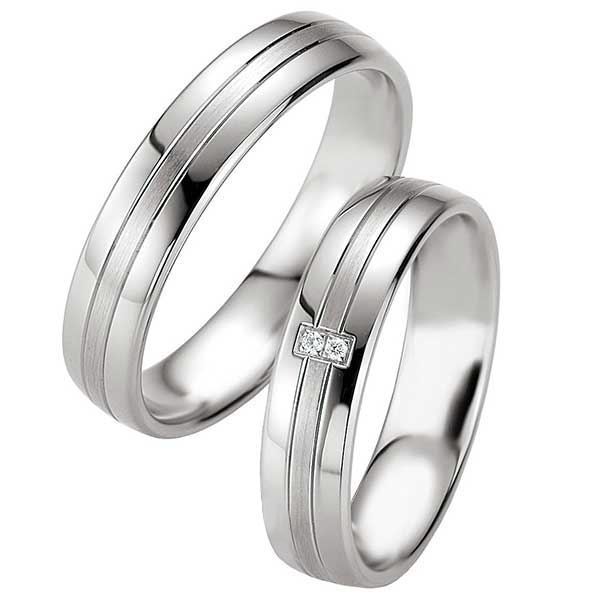 Samboerringer i sølv, 5 mm, 1,8 mm tykk med 2 diamant 0,015 ct - 4808069