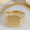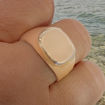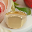 Gult gull 18kt/750. Bredde foran på ringer er 14 mm. Vekt: 6 g.