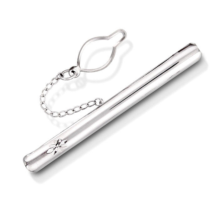 Slipsnål i sølv med metall bakstykke. Rhodinert. En sølv slipsnål for menn er et uttrykk for tidløs eleganse og raffinert stil. Laget av høykvalitets sølv, gir denne tilbehørsdetaljen et strålende og polert preg til ethvert antrekk. Den subtile glansen og glimtet av en sølv slipsnål skaper en sofistikert kontrast mot slipsets stoff, og legger til en ekstra dimensjon av klasse.