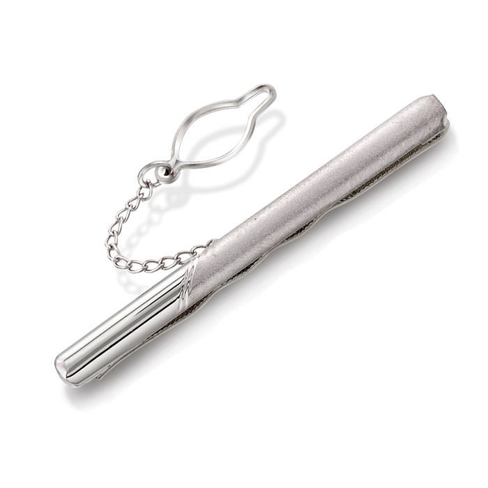 Slipsnål i sølv med metall bakstykke. Rhodiner. En sølv slipsnål for menn er et uttrykk for tidløs eleganse og raffinert stil. Laget av høykvalitets sølv, gir denne tilbehørsdetaljen et strålende og polert preg til ethvert antrekk. Den subtile glansen og glimtet av en sølv slipsnål skaper en sofistikert kontrast mot slipsets stoff, og legger til en ekstra dimensjon av klasse.