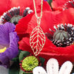 Smykke Blad i 14 karat gult gull Bredde på anheng er 15 mm. Lengde på kjede er 42 cm +3 cm forlenger