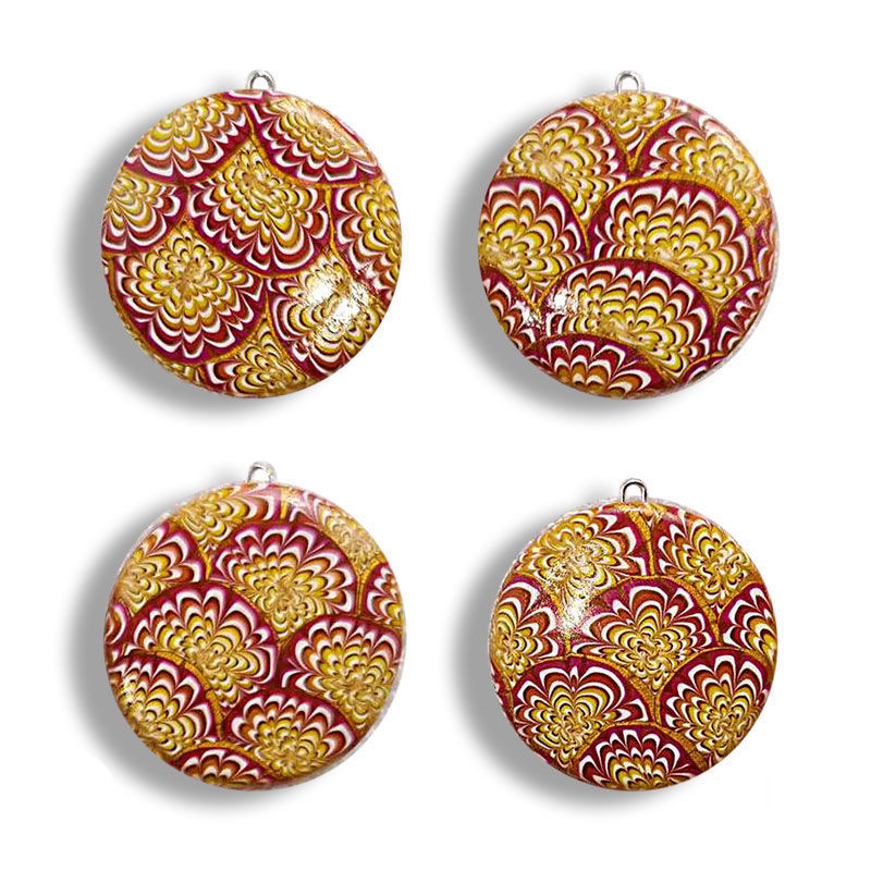 Smykke laget i teknikken Milefiori. På italiensk betyr Milefiori 1000 blomster.Blir ofte brukt for å pryde glassgjenstander med mønster. Tynne skiver av glass blir smeltet sammen for å danne mønster I selve glasset. Denne teknikken kan også benyttes med andre materialer. Metoden er kjent fra gammel tid i Egypt og Romerikket, var spesielt populært i Venezia på 1500 tallet.