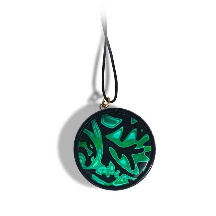 Norsk design og produksjon håndlaget smykke. Snor med lås ikke inkludert i prisen. Velg lengde på snor eller på kjede. Hvis du trenger en annen lengde på snor, kryss av smykke forlenger. Overflaten er polert og lakkert. Diameter er 35 mm, tykkelse 3 mm. Se i beskrivelsen nede hvordan smykke ble laget.