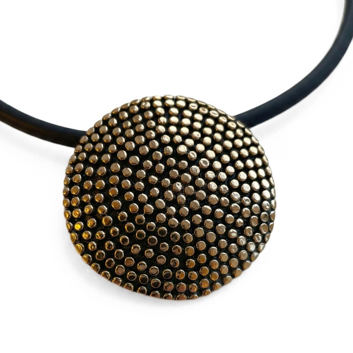Smykket Slow fra Hillestad er et kunstnerisk og tidløst smykke i bronse, inspirert av naturens rytme og ro. Anhenget har en organisk og strukturert utforming som gir et moderne, men samtidig klassisk uttrykk. Den varme bronsetonen fremhever smykkets unike tekstur og gjør det til et elegant blikkfang. Perfekt både til hverdagsbruk og festlige anledninger, og et smykke som kombinerer nordisk minimalisme med kunstnerisk design. Anhenget har en diameter på 52 mm og en gummisnor på 45 cm.