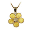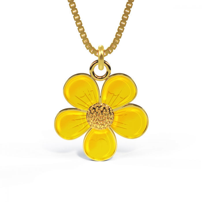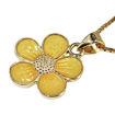 • Dette smykket har en smørblomst som henger som en liten bjelle. Emaljen gir blomsten livlige farger og gjør den til et blikkfang.