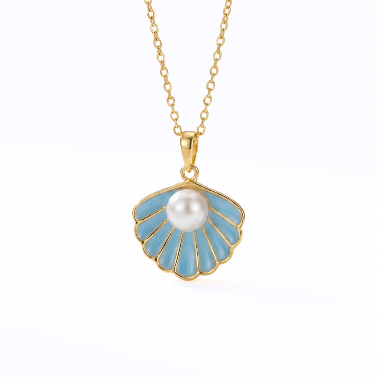 Sølvmykke sommer med lys blå coloritt og perle, forgylt - 3042542