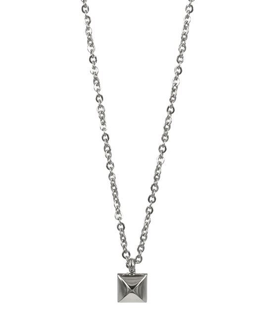 CARRIE Mini Short Necklace Steel. Short, pretty necklace in polished steel with a soft bulging rivet pendant. Steel chain. Size of the rivet: 8x8 mm. Color: Polished Steel. Material: Steel. Length: 40 cm + 6 cm extension chain.