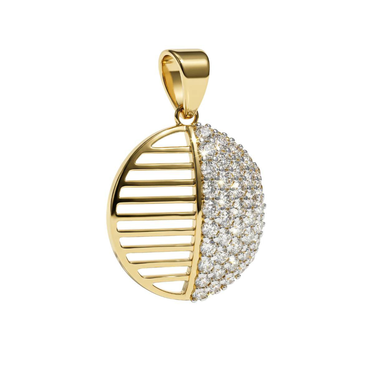 Et moderne og elegant anheng i gult gull 14 kt (585), designet med en stilfull rund form som kombinerer glatte gullflater med glitrende zirkonia for et luksuriøst uttrykk. Den delikate balansen mellom blankt gull og skinnende stener gjør smykket både iøynefallende og tidløst. Perfekt til både hverdagsbruk og festlige anledninger. Kjede er ikke inkludert i prisen, og du kan velge et passende kjede fra utvalget nedenfor.