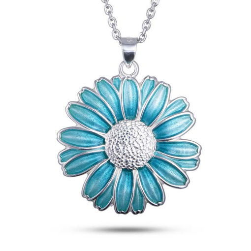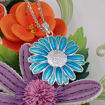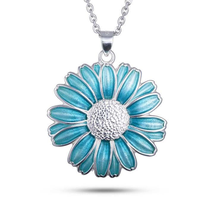 Margeritt anheng i turkis glassemalje. Bredde 26 mm. Ankerkjede 42+5 cm medfølger.. Smykkene er i sølv 925.