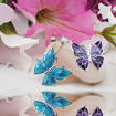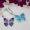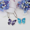 Sommerfugl anheng i lilla glassemalje. Høyde 25 mm. Ankerkjede 42+5 cm medfølger.. Smykkene er i sølv 925.