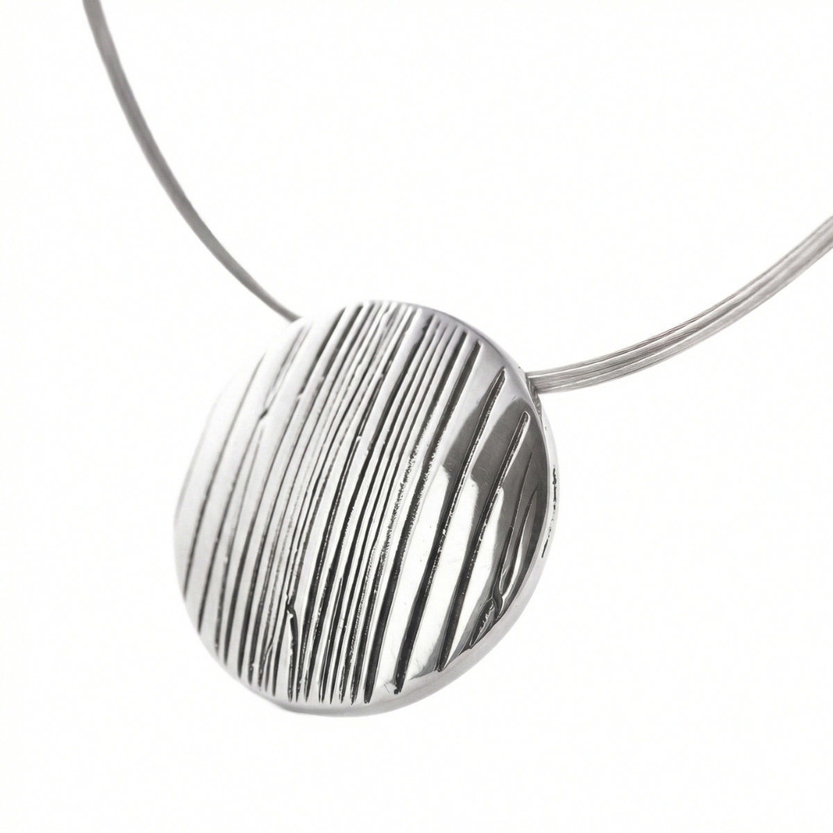 Et moderne og stilrent smykke i tinn, designet av den anerkjente kunstneren Anna Berthelsen for Hillestad. Anhenget «Gry» har en diameter på 35 mm og er festet til en elegant 6-strengs wire på 45 cm, som gir et lett og sofistikert uttrykk. Smykket kombinerer nordisk minimalisme med kunstnerisk detaljrikdom, og passer perfekt både til hverdagsbruk og festlige anledninger.