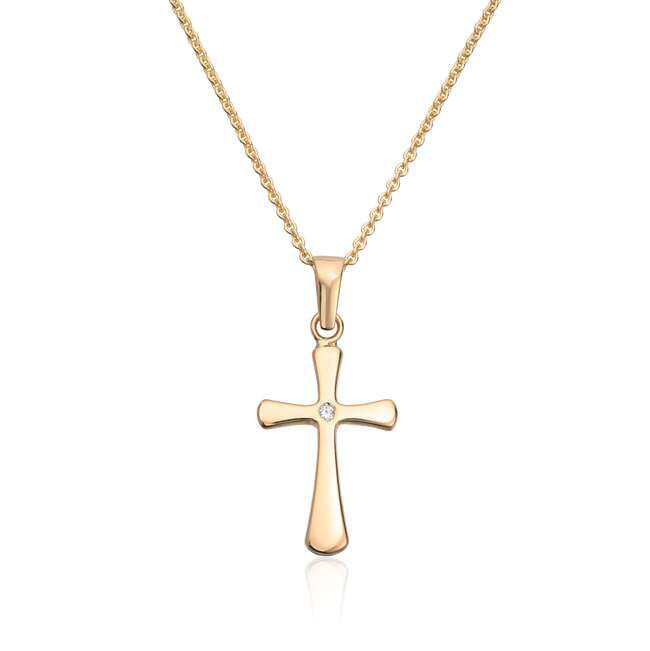 Smykke kors i gult gull med diamant 0,01ct WSI - 27425
