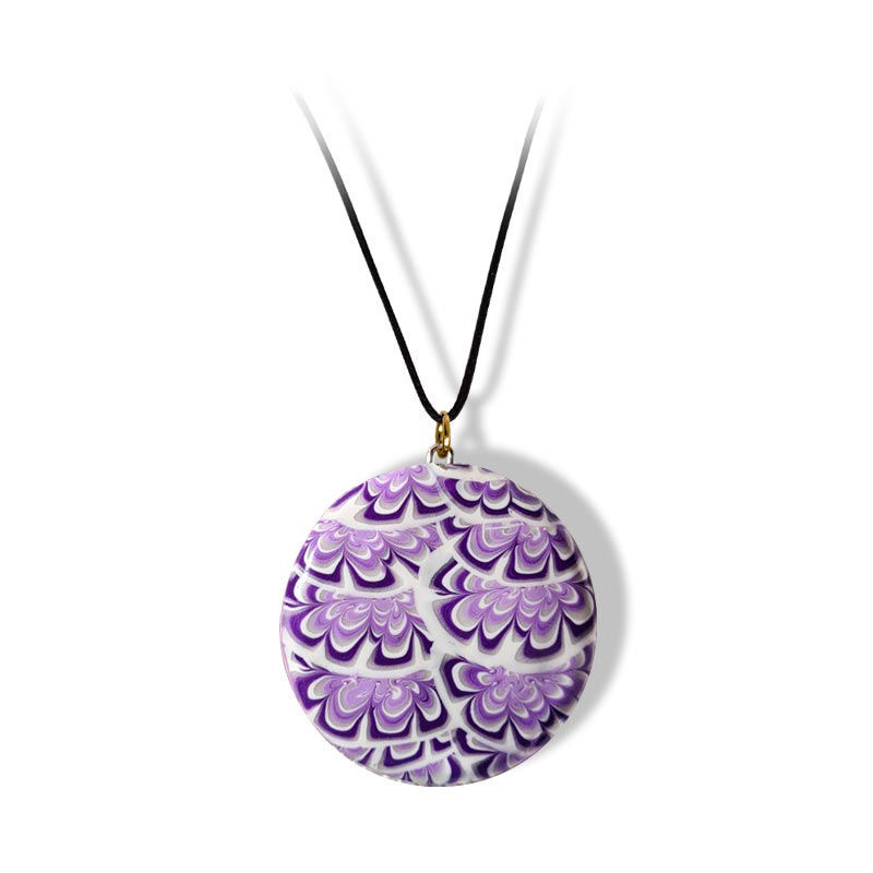 Smykke laget i teknikken Milefiori. På italiensk betyr Milefiori 1000 blomster.Blir ofte brukt for å pryde glassgjenstander med mønster. Tynne skiver av glass blir smeltet sammen for å danne mønster I selve glasset. Denne teknikken kan også benyttes med andre materialer. Metoden er kjent fra gammel tid i Egypt og Romerikket, var spesielt populært i Venezia på 1500 tallet.