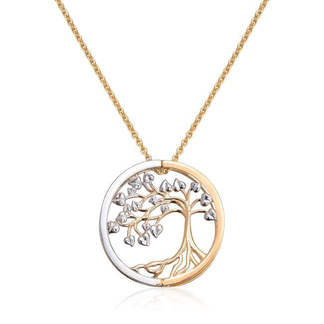 Smykke Livets tre i to farget hvitt og gult gull - 27446