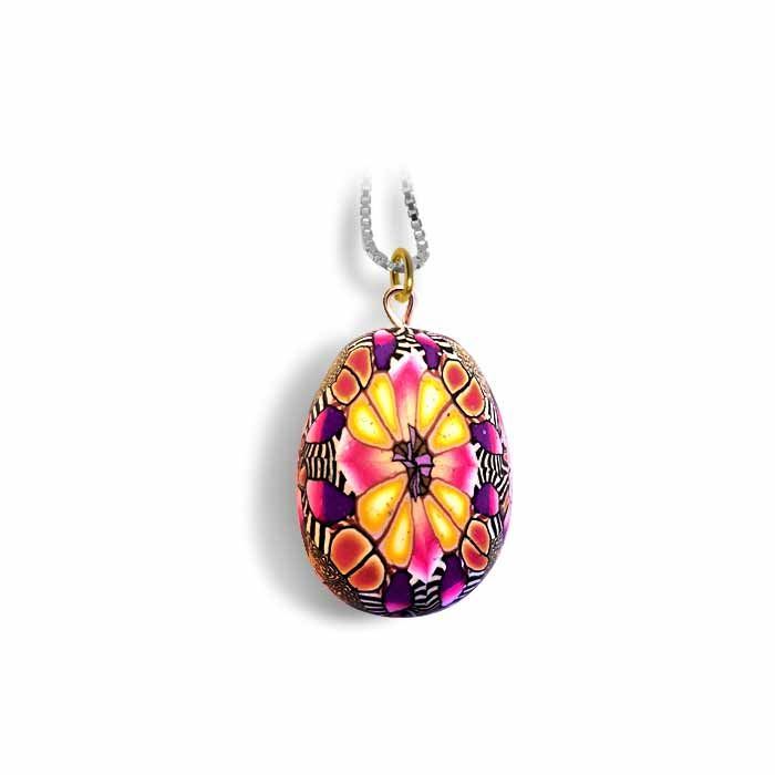 Norsk design og produksjon. Hele egget har samme mønster. Forsiden og baksiden er lik. Smykke egg har størrelse ca 25x18 mm, håndlaget. Snor /kjede med lås er ikke inkludert i prisen Velg snor eller sølv kjede. Overflaten er blank, polert og lakkert. Se i beskrivelsen nede hvordan smykke ble laget. Hvert smykke er håndlaget, derfor kan det forekomme noen avvik i mønstret fra det avbildete smykket.