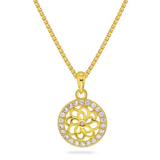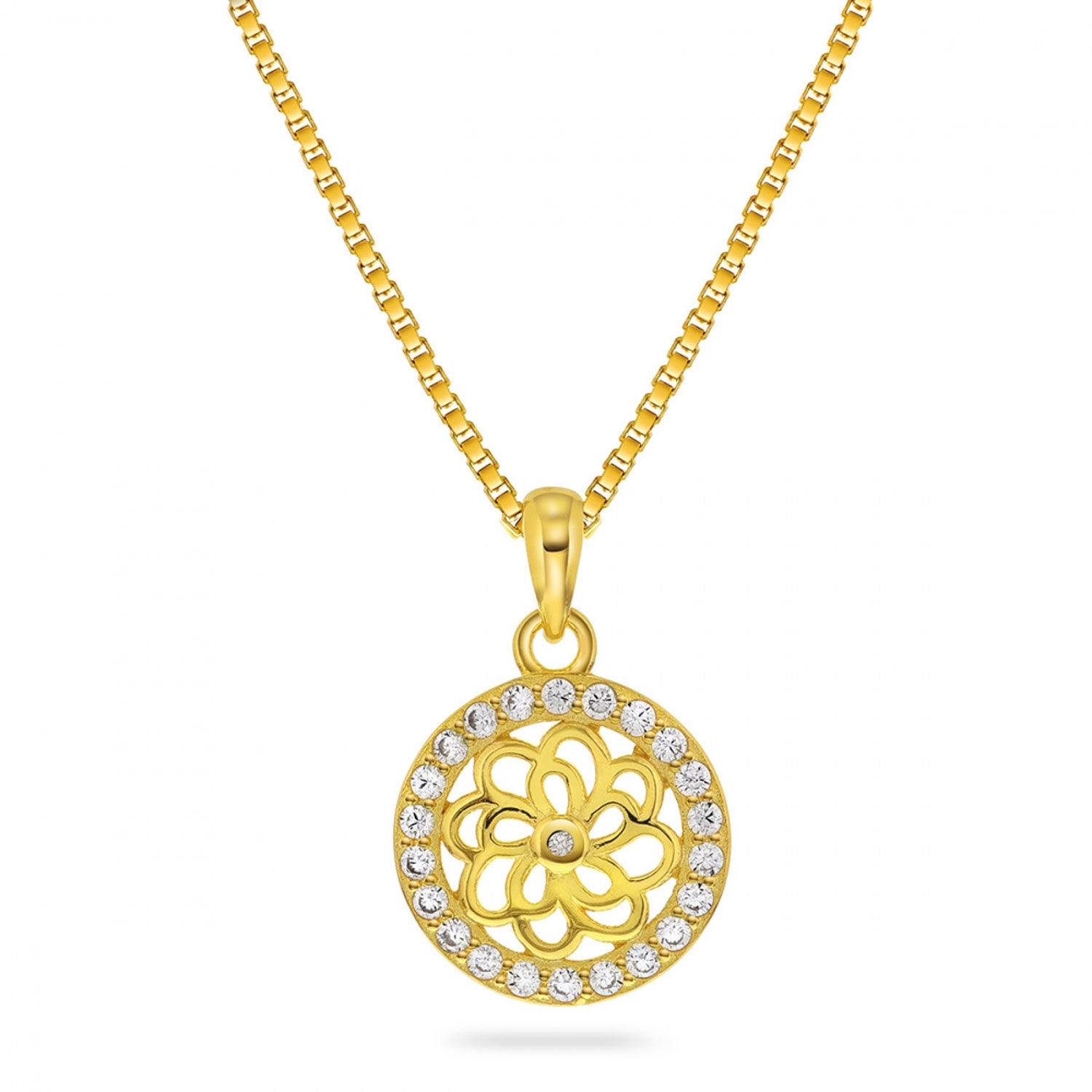 Smykke sirkel med blomst i forgylt sølv med zirkonia - 67872