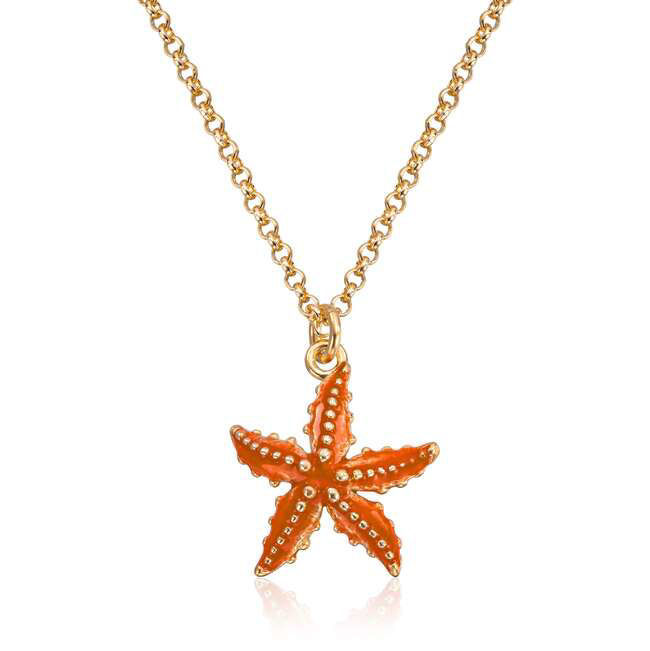 Smykke Sjøstjerne i forgylt sølv 925, med kjede 45 cm *Metall: 925 Sølv *Overflate: Forgylling *Lengde på kjede : 45 cm *Bredde: 17 mm *Høyde: 17 mm