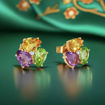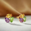 Smykkesett i 18kt gull med diamanter 0,02 ct og edelstener. Bredde av smykke er 12 mm. Lengde av smykke med øsker er 16 mm. Uten kjede. Se utvalget av kjeder nedenfor.