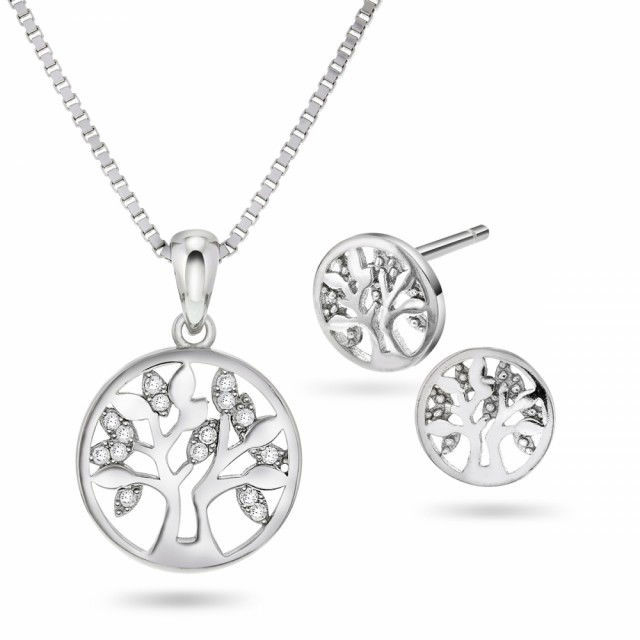 Smykkesett Livets tre i rhodinert sølv med zirkonia - 69546