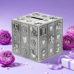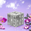 Sparebøsse i metall formet som en lekekloss. Størrelse: 7 x 7 x 7cm.