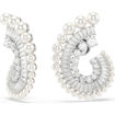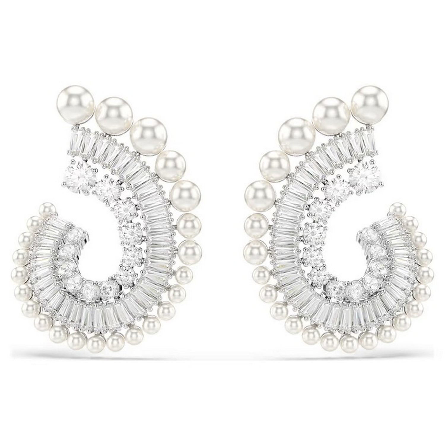 Infused with Swarovski savoir-faire, these striking pierced earrings are an ultra-modern way to elevate any outfit. Each rhodium plated piece features an open spiral of round and baguette-cut Swarovski Zirconia in a gradient of sizes. On the outer section, the design is completed by a gradient of Swarovski Crystal Pearls, which deliver a luxurious and captivating touch. A bright and beautiful pair of earrings that can be easily matched with other pieces from the same creative family.