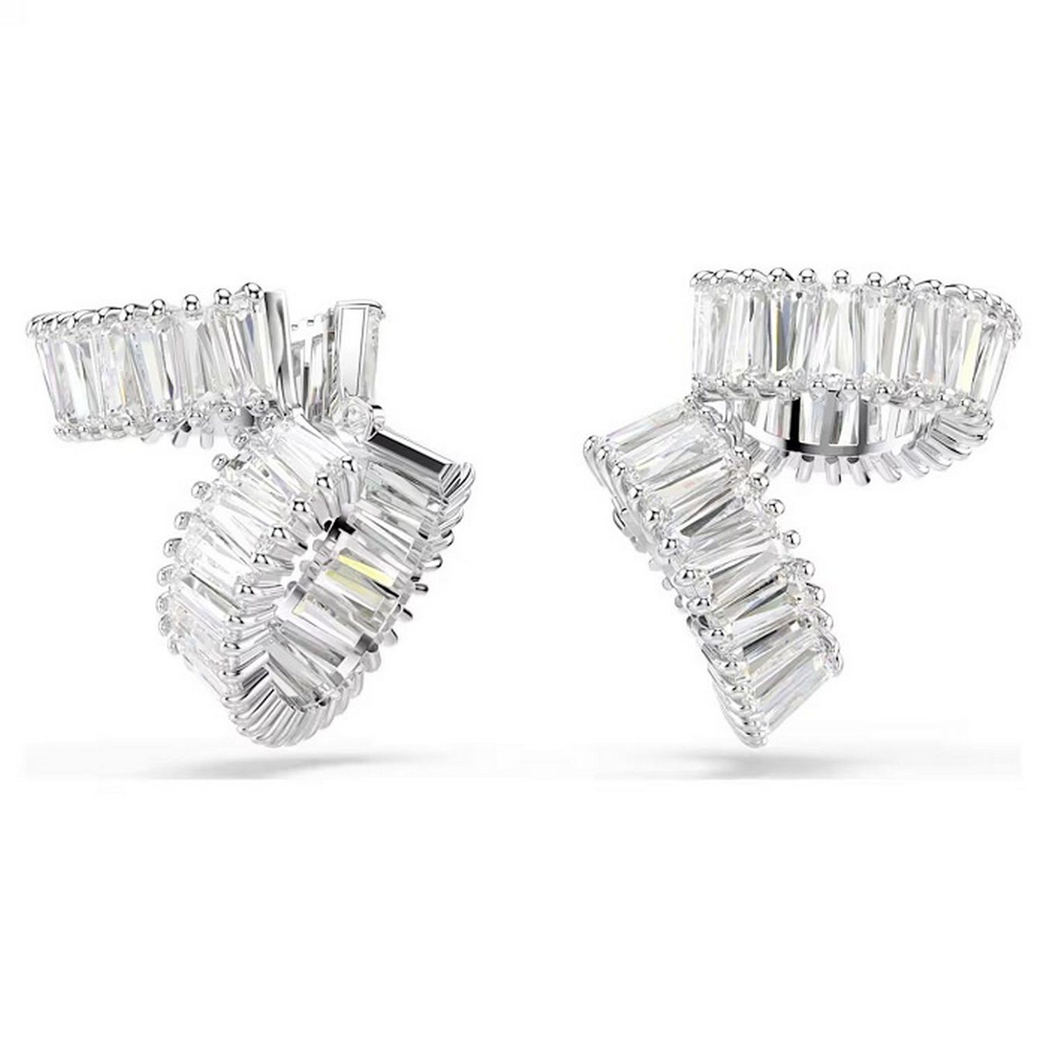 One is never enough. That’s why these Swarovski ear cuffs are presented with two showstopping bands. Each piece is rhodium plated and beautifully set with clear Swarovski Zirconia in a baguette cut. This modern and alternative style will give any outfit an instant lift and fill your look with light.
