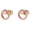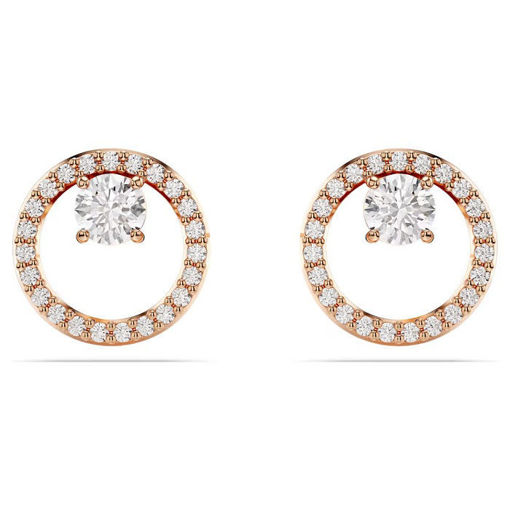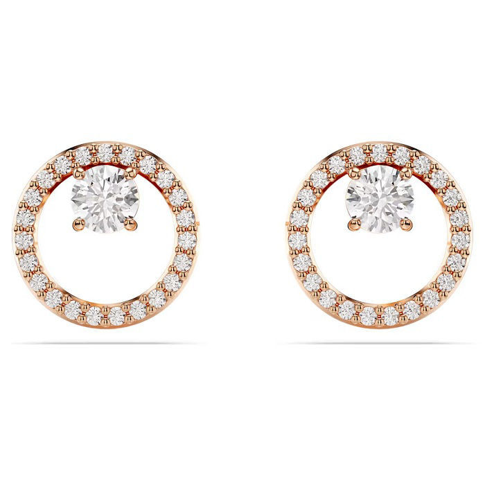 These refined circle studs exude timeless elegance. Each pierced piece is rose gold-tone plated and features a central pavé ring of clear Swarovski Zirconia as well as a single prong-set Swarovski Zirconia placed in the middle. Amp up the drama by pairing with a matching Constella pendant.