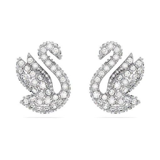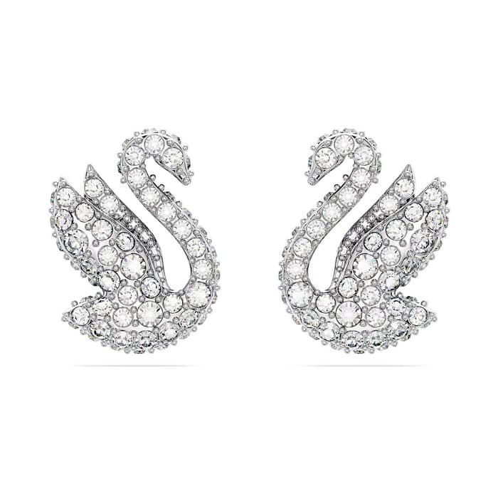 The iconic Swarovski Swan has been gracefully brought to life in this pair of stud earrings. Designed with wings aloft, ready to take flight, the swan is embellished with an all-over pavé of shimmering clear crystals on shining rhodium plating. Choose this style for a delicate dose of daily inspiration.