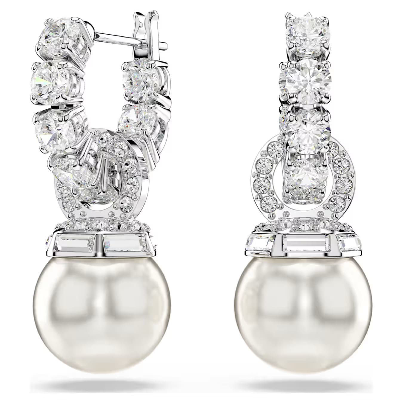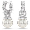 Amplify the elegance in your style with these Matrix pierced earrings. The rhodium plated pieces feature tennis hoops and connecting rings that are embellished with dazzling pavé, while the Swarovski Crystal Pearls add a classic touch of pure refinement. It’s the reimagination of a timeless look that you can wear for almost any occasion.