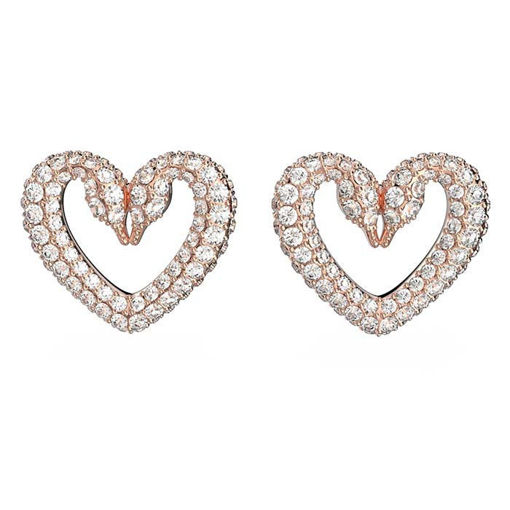 Ideal for everyday dressing, these pierced earrings represent a new direction for the iconic Swarovski swan emblem. Formed in the shape of a heart, this rose gold-tone plated pair is designed to spark the imagination with dazzling pavé crystals. The perfect gift for a loved one – or yourself. These earrings are part of the Una Family, designed for Collection III.