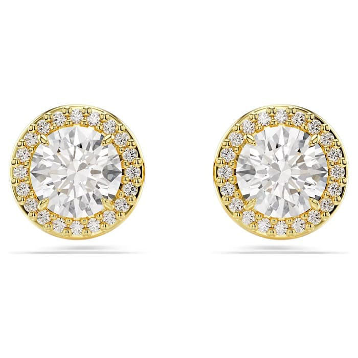Emitting a golden glow, these Una studs will brighten any look. Each gold-tone plated piece is set with a brilliant central crystal and a halo of smaller round-cut crystals. An eye-catching addition to your jewelry collection that you’ll reach for time and time again.