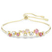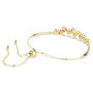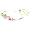 Let your playful side shine with this warm and joyful bracelet. The Constella design features a delicate chain and gold-tone plated bars, along with a vibrant display of crystals and Swarovski Zirconia in various sizes. The vivid mix of clear tones and pink and red shades gives the bracelet a captivating appearance, while the sliding adjustment allows you to easily change the fit.