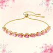 Swarovski’s flair for creativity shines through this bright and playful bracelet. Crafted with a sliding closure, the gold-tone plated design is decorated with a row of pear-cut Swarovski Zirconia, presented in a romantic pink color and each placed in a prong setting. Perfect for layering with other bracelets to tell your own style story.