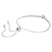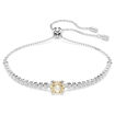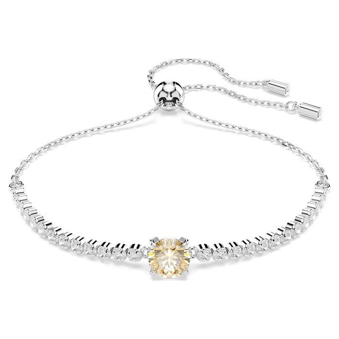A fresh take on the classic tennis bracelet, this Matrix piece pairs clear Swarovski Zirconia with a glowing pop of color. Fastened with a sliding closure, the rhodium plated jewelry features a uniform row of clear Swarovski Zirconia accented with a round-cut champagne Swarovski Zirconia at the center. A joyfully radiant piece that will enhance any outfit.